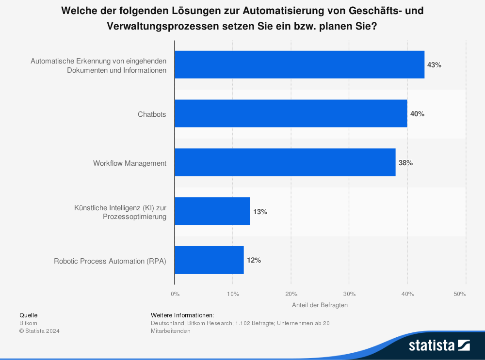 Die Bedeutung der Automatisierung zeigt sich deutlich in aktuellen Statistiken. Laut einer Studie von Statista haben bereits 42 Prozent der deutschen Unternehmen im Jahr 2023 bestimmte Prozesse automatisiert, um effizienter zu arbeiten. Die Zahl der Unternehmen, die Automatisierung einsetzen, ist in den letzten Jahren stetig gestiegen, und der Trend deutet auf eine weitere Zunahme hin.
